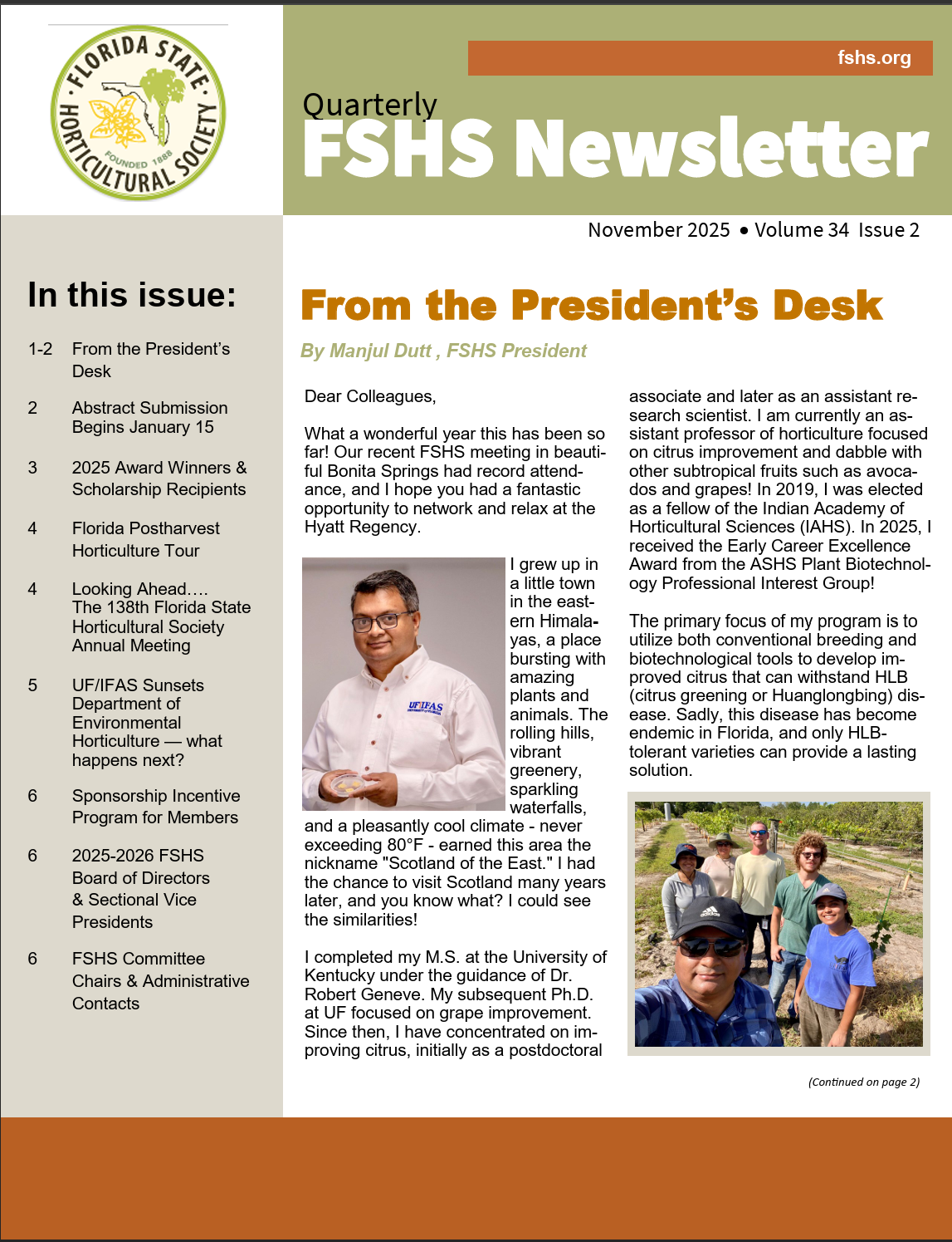 Newsletters are published approximately quarterly. Our Newsletter contains articles, botanical facts, information about upcoming events, and more. You’ll find something of interest in the FSHS if you want to stay up to date on who’s who and what’s what in Florida horticulture.